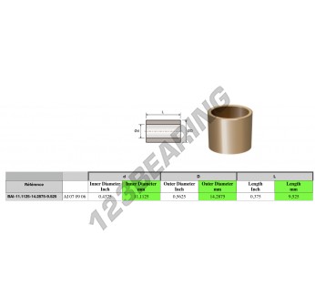 Il Boccole In Bronzo conosciuto con il riferimento BAI11.1125-14.2875-9.525 Generico ha un diametro interno di 11.1125 mm, un diametro esterno di 14.2875 mm e una lunghezza di 9.525 mm. È prodotto in .