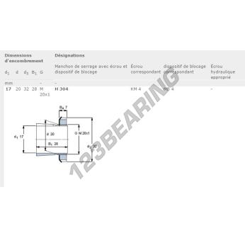 Il Bussole, noto come H304-SKF SKF, ha un diametro interno di 17 mm, un diametro esterno di 32 mm e uno spessore di 28 mm.