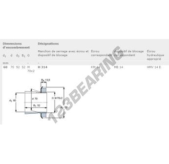 Il Bussole, noto come H314-SKF SKF, ha un diametro interno di 60 mm, un diametro esterno di 92 mm e uno spessore di 52 mm.