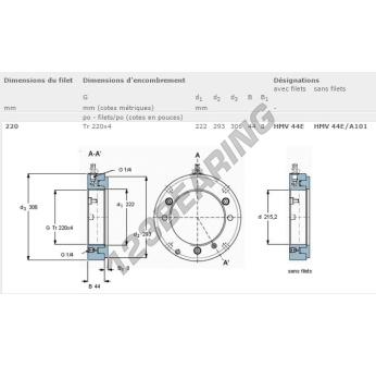 Questo dado ha un diametro interno di 222mm, un diametro esterno di 306mm e uno spessore di 44mm.