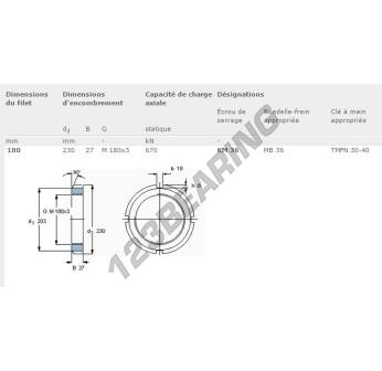 Questo dado ha un diametro interno di 180mm, un diametro esterno di 230mm e uno spessore di 27mm.