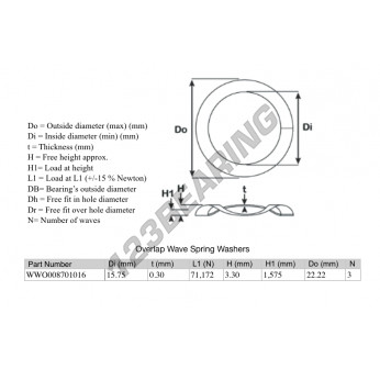 Il Rondelle Per Molle Ondulate Sovraposte con riferimento OWSW-22.22-15.75-0.3-3 ha un diametro interno di 15.75 mm e uno spessore di 0.3 mm. È realizzato in materiale ACCIAIO.