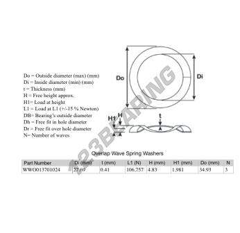 Il Rondelle Per Molle Ondulate Sovraposte con riferimento OWSW-34.930-27.690-0.410-3 ha un diametro interno di 27.69 mm e uno spessore di 0.41 mm. È realizzato in materiale ACCIAIO.