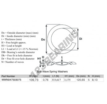 Il Rondelle Per Molle Ondulate Divise con riferimento SWSW-120.65-109.73-0.76-5 ha un diametro interno di 109.73 mm e uno spessore di 0.76 mm. È realizzato in materiale ACCIAIO.