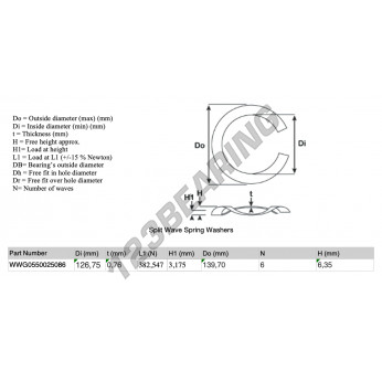 Il Rondelle Per Molle Ondulate Divise con riferimento SWSW-139.70-126.75-0.76-6 ha un diametro interno di 126.75 mm e uno spessore di 0.76 mm. È realizzato in materiale ACCIAIO.