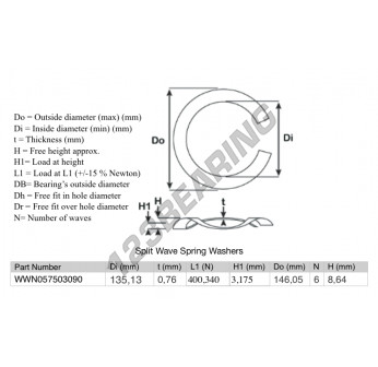 Il Rondelle Per Molle Ondulate Divise con riferimento SWSW-146.05-135.13-0.76-6 ha un diametro interno di 135.13 mm e uno spessore di 0.76 mm. È realizzato in materiale ACCIAIO.