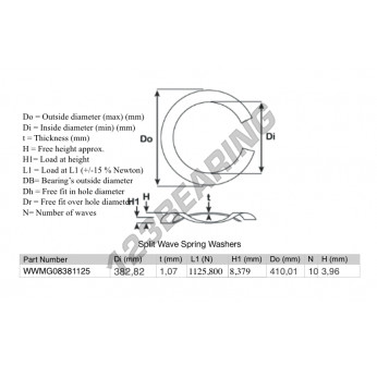 Il Rondelle Per Molle Ondulate Divise con riferimento SWSW-410-382.82-1.07-10 ha un diametro interno di 382.82 mm e uno spessore di 1.07 mm. È realizzato in materiale ACCIAIO.
