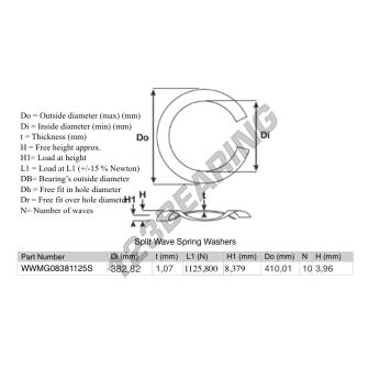 Il Rondelle Per Molle Ondulate Divise con riferimento SWSW-410.010-382.820-1.070-10-SS ha un diametro interno di 382.82 mm e uno spessore di 1.07 mm. È realizzato in materiale ACCIAIO INOSSIDABILE.