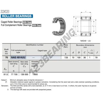 Il Altri Cuscinetti, noto come NAU4914-UU-IKO IKO, ha un diametro interno di 70 mm, un diametro esterno di 100 mm e uno spessore di 30 mm.