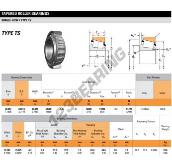 Il Cuscinetto Conico, noto come 14118AS-14276-TIMKEN TIMKEN, ha un diametro interno di 29.99 mm, un diametro esterno di 69.01 mm e uno spessore di 19.85 mm.