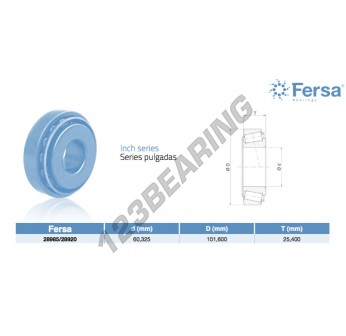Il Cuscinetto Conico, noto come 28985-28920-ASFERSA ASFERSA, ha un diametro interno di 60.325 mm, un diametro esterno di 101.6 mm e uno spessore di 25.4 mm.