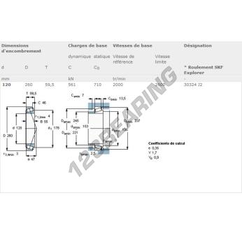 Il Cuscinetto Conico, noto come 30324-J2-SKF SKF, ha un diametro interno di 120 mm, un diametro esterno di 260 mm e uno spessore di 59.5 mm.