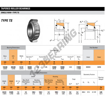 Il Cuscinetto Conico, noto come 98394X-98788-TIMKEN TIMKEN, ha un diametro interno di 100 mm, un diametro esterno di 200 mm e uno spessore di 52.761 mm.