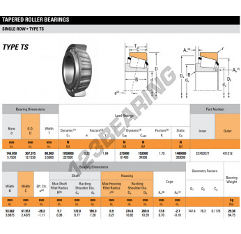 Il Cuscinetto Conico, noto come EE450577-451212-TIMKEN TIMKEN, ha un diametro interno di 146.05 mm, un diametro esterno di 307.975 mm e uno spessore di 88.9 mm.