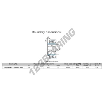 Il Cuscinetti Orientabili A Rulli, noto come 230-500RK-AHX30-500-JTEKT JTEKT, ha un diametro interno di 480 mm, un diametro esterno di 720 mm e uno spessore di 167 mm.