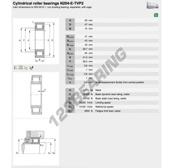 Il Cuscinetto A Rulli, noto come N204-E-TVP2-FAG FAG, ha un diametro interno di 20 mm, un diametro esterno di 47 mm e uno spessore di 14 mm.