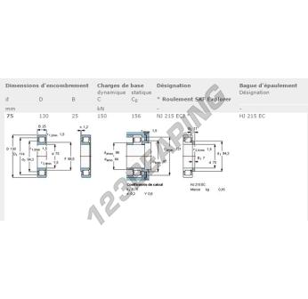 Il Cuscinetto A Rulli, noto come NJ215-ECJ-SKF SKF, ha un diametro interno di 75 mm, un diametro esterno di 130 mm e uno spessore di 25 mm.