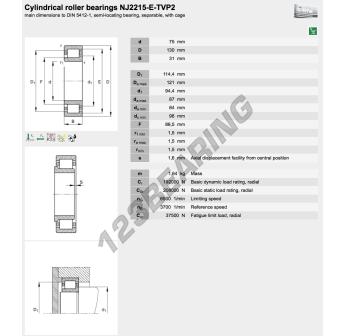 Il Cuscinetto A Rulli, noto come NJ2215-E-TVP2-FAG FAG, ha un diametro interno di 75 mm, un diametro esterno di 130 mm e uno spessore di 31 mm.
