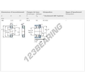 Il Cuscinetto A Rulli, noto come NJ408-SKF SKF, ha un diametro interno di 40 mm, un diametro esterno di 110 mm e uno spessore di 27 mm.
