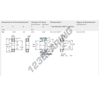 Il Cuscinetto A Rulli, noto come NU213-ECM-SKF SKF, ha un diametro interno di 65 mm, un diametro esterno di 120 mm e uno spessore di 23 mm.