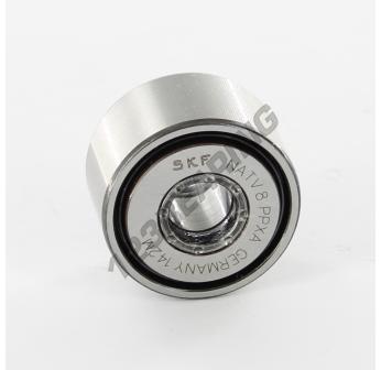 Il Rullo Di Scorrimento, noto come NATV8-PPX-SKF SKF, ha un diametro interno di 8 mm, un diametro esterno di 24 mm e uno spessore di 14 mm.