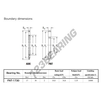 Il Cuscinetti Assiali A Rullini, noto come FNT1730-JTEKT JTEKT, ha un diametro interno di 17 mm, un diametro esterno di 30 mm e uno spessore di 2 mm.
