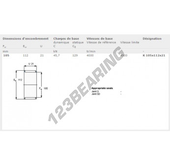 Il Gruppi Rullini E Gabbia, noto come K105-112-21-SKF SKF, ha un diametro interno di 105 mm, un diametro esterno di 112 mm e uno spessore di 21 mm.