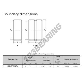 Il Gruppi Rullini E Gabbia, noto come K8X11X8-TN-JTEKT JTEKT, ha un diametro interno di 8 mm, un diametro esterno di 11 mm e uno spessore di 8 mm.