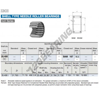 Il Gusci A Rullini, noto come BAM167-IKO IKO, ha un diametro interno di 25.4 mm, un diametro esterno di 31.75 mm e uno spessore di 11.13 mm.