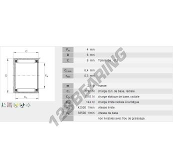 Il Gusci A Rullini, noto come BK0408-INA INA, ha un diametro interno di 4 mm, un diametro esterno di 8 mm e uno spessore di 8 mm.