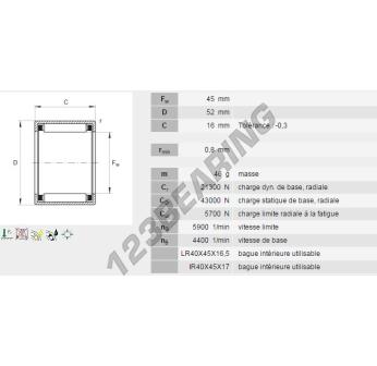 Il Gusci A Rullini, noto come HK4516-A-HLA-INA INA, ha un diametro interno di 45 mm, un diametro esterno di 52 mm e uno spessore di 16 mm.