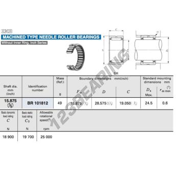 Il Cuscinetti A Rullini, noto come BR101812-IKO IKO, ha un diametro interno di 15.875 mm, un diametro esterno di 28.575 mm e uno spessore di 19.05 mm.