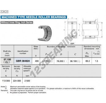 Il Cuscinetti A Rullini, noto come GBR364824-IKO IKO, ha un diametro interno di 57.15 mm, un diametro esterno di 76.2 mm e uno spessore di 38.1 mm.