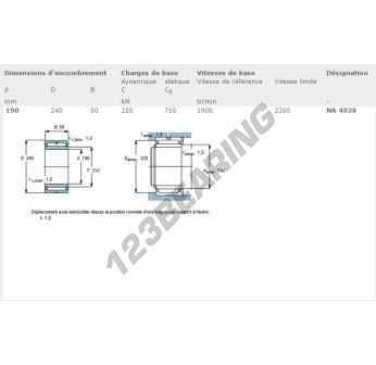 Il Cuscinetti A Rullini, noto come NA4838-SKF SKF, ha un diametro interno di 190 mm, un diametro esterno di 240 mm e uno spessore di 50 mm.