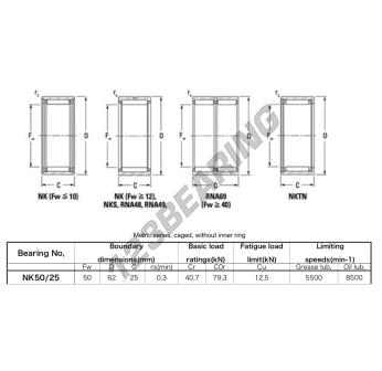 Il Cuscinetti A Rullini, noto come NK5025A-JTEKT JTEKT, ha un diametro interno di 50 mm, un diametro esterno di 62 mm e uno spessore di 25 mm.