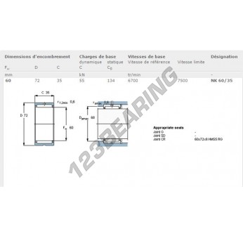 Il Cuscinetti A Rullini, noto come NK6035-SKF SKF, ha un diametro interno di 60 mm, un diametro esterno di 72 mm e uno spessore di 35 mm.