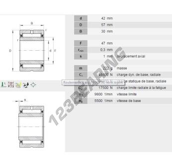 Il Cuscinetti A Rullini, noto come NKI4230-INA INA, ha un diametro interno di 42 mm, un diametro esterno di 57 mm e uno spessore di 30 mm.