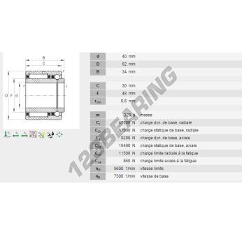 Il Cuscinetti A Rullini, noto come NKIB5908-INA INA, ha un diametro interno di 40 mm, un diametro esterno di 62 mm e uno spessore di 34 mm.