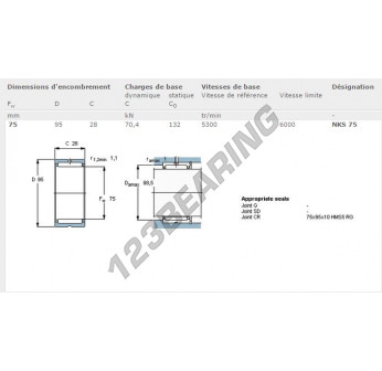 Il Cuscinetti A Rullini, noto come NKS75-SKF SKF, ha un diametro interno di 75 mm, un diametro esterno di 95 mm e uno spessore di 28 mm.