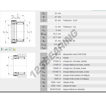 Il Cuscinetti A Rullini, noto come NKXR35-Z-INA INA, ha un diametro interno di 35 mm, un diametro esterno di 47 mm e uno spessore di 30 mm.
