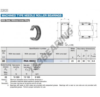 Il Cuscinetti A Rullini, noto come RNA4903-U-IKO IKO, ha un diametro interno di 22 mm, un diametro esterno di 30 mm e uno spessore di 13 mm.