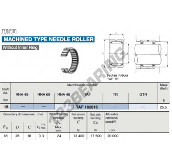 Il Cuscinetti A Rullini, noto come TAF182616-IKO IKO, ha un diametro interno di 18 mm, un diametro esterno di 26 mm e uno spessore di 16 mm.