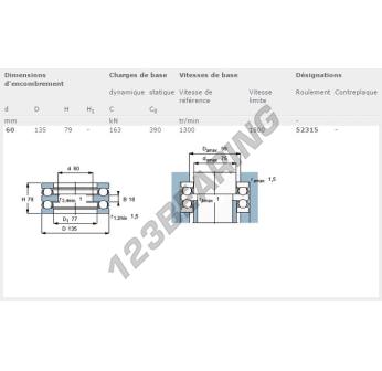 Il Cuscinetti Assiali A Sfere, noto come 52315-SKF SKF, ha un diametro interno di 60 mm, un diametro esterno di 135 mm e uno spessore di 79 mm.