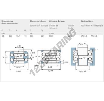 Il Cuscinetti Assiali A Sfere, noto come 54312-SKF SKF, ha un diametro interno di 50 mm, un diametro esterno di 110 mm e uno spessore di 70.7 mm.