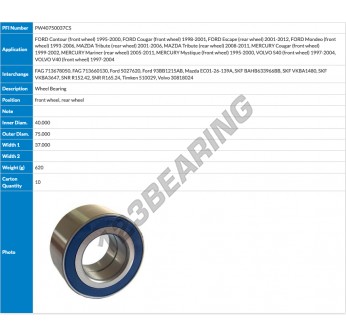 Il Cuscinetto A Sfera- Doppia Fila, noto come PW40750037CS-PFI PFI, ha un diametro interno di 40 mm, un diametro esterno di 75 mm e uno spessore di 37 mm.