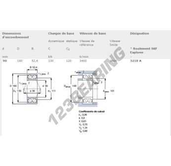 Il Cuscinetti A Sfera, noto come 3218-A-SKF SKF, ha un diametro interno di 90 mm, un diametro esterno di 160 mm e uno spessore di 52.4 mm.