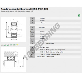 Il Cuscinetti A Sfera, noto come 3802-B-2RSR-TVH-FAG FAG, ha un diametro interno di 15 mm, un diametro esterno di 24 mm e uno spessore di 7 mm.