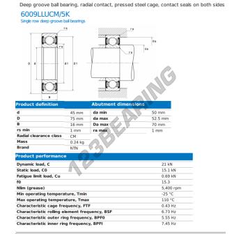 Il Cuscinetti A Sfera, noto come 6009-LLU-CM-5K-NTN NTN, ha un diametro interno di 45 mm, un diametro esterno di 75 mm e uno spessore di 16 mm.