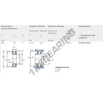 Il Cuscinetti A Sfera, noto come 61810-2RS1-SKF SKF, ha un diametro interno di 50 mm, un diametro esterno di 65 mm e uno spessore di 7 mm.