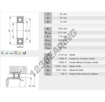 Il Cuscinetti A Sfera, noto come 61813-Y-INA INA, ha un diametro interno di 65 mm, un diametro esterno di 85 mm e uno spessore di 10 mm.